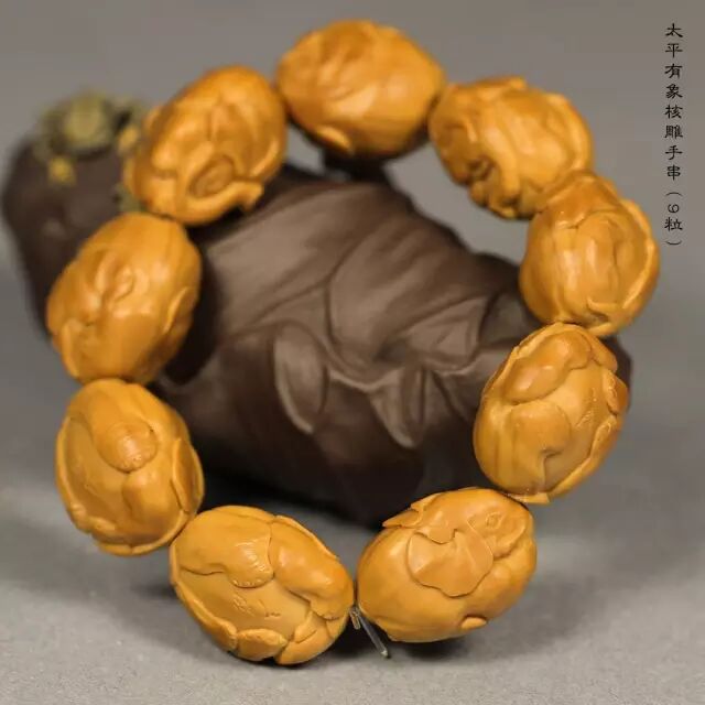 作品介绍:此件核雕憨态可鞠,线条流畅纤细,运刀娴熟,象鼻与象耳细节清晰可见,大象是平安、和平的象征,寓意平安福乐。