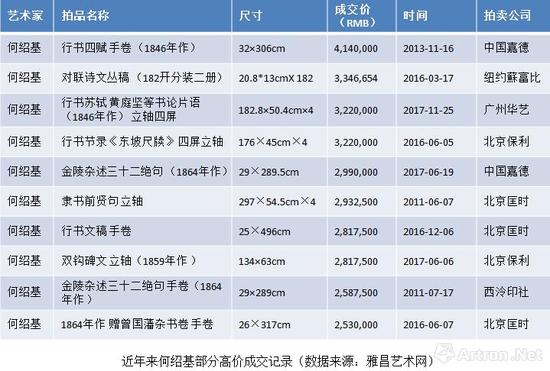 在董国强看来,近几年何绍基的市场的确出现了明显变化。“以一幅对联为例,5年前的拍卖价格大约是8万左右,而如今的一幅何绍基对联价格大约在30万左右,总体市场情况大约翻了两倍。稍微好一点的书法则在50万左右,精品何绍基则多在百万以上。”
